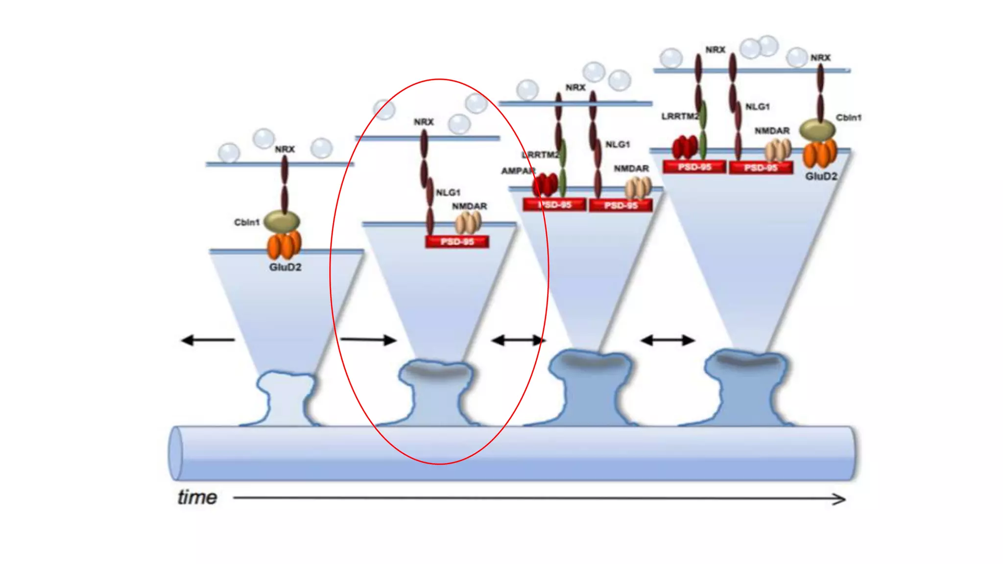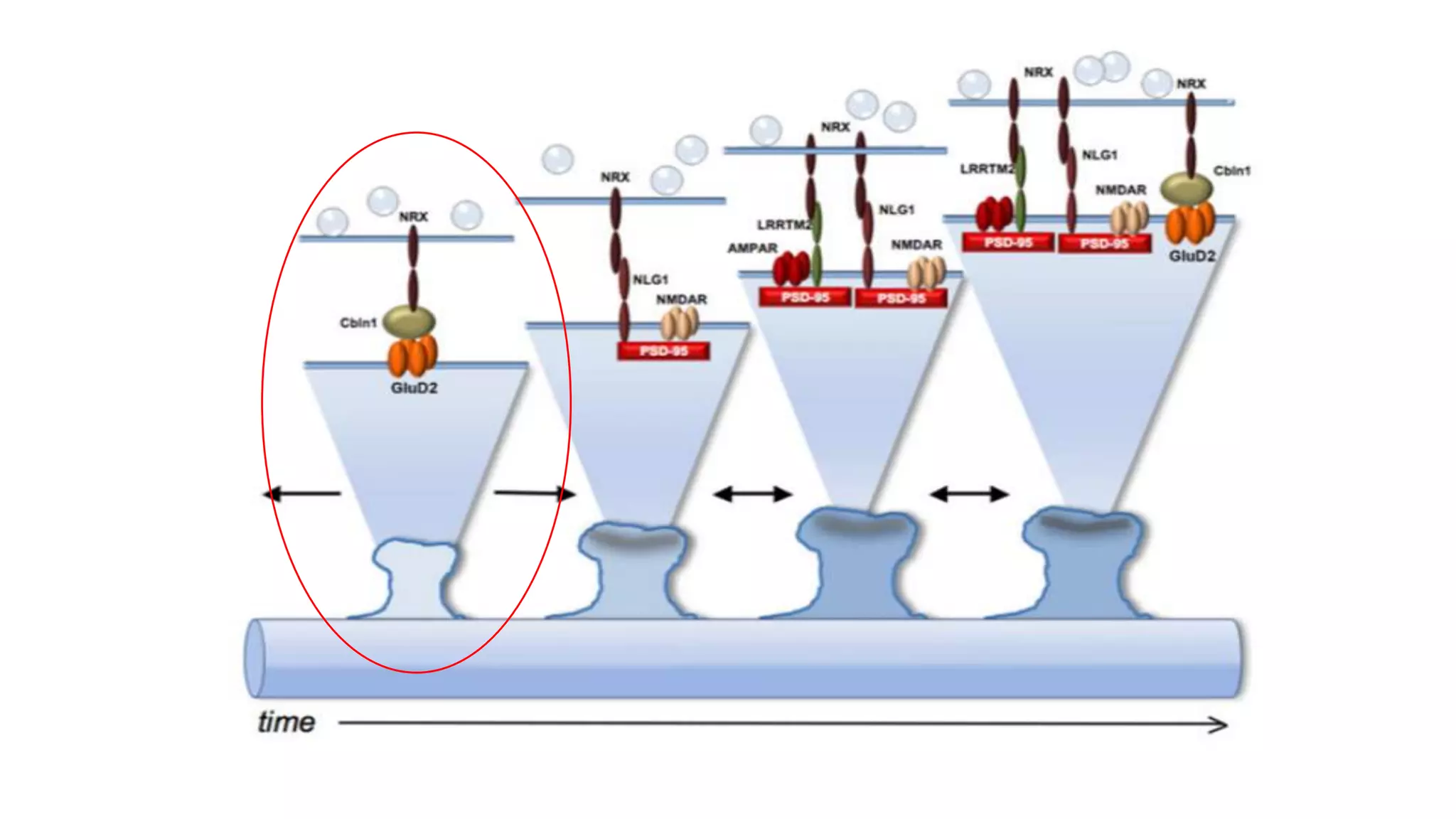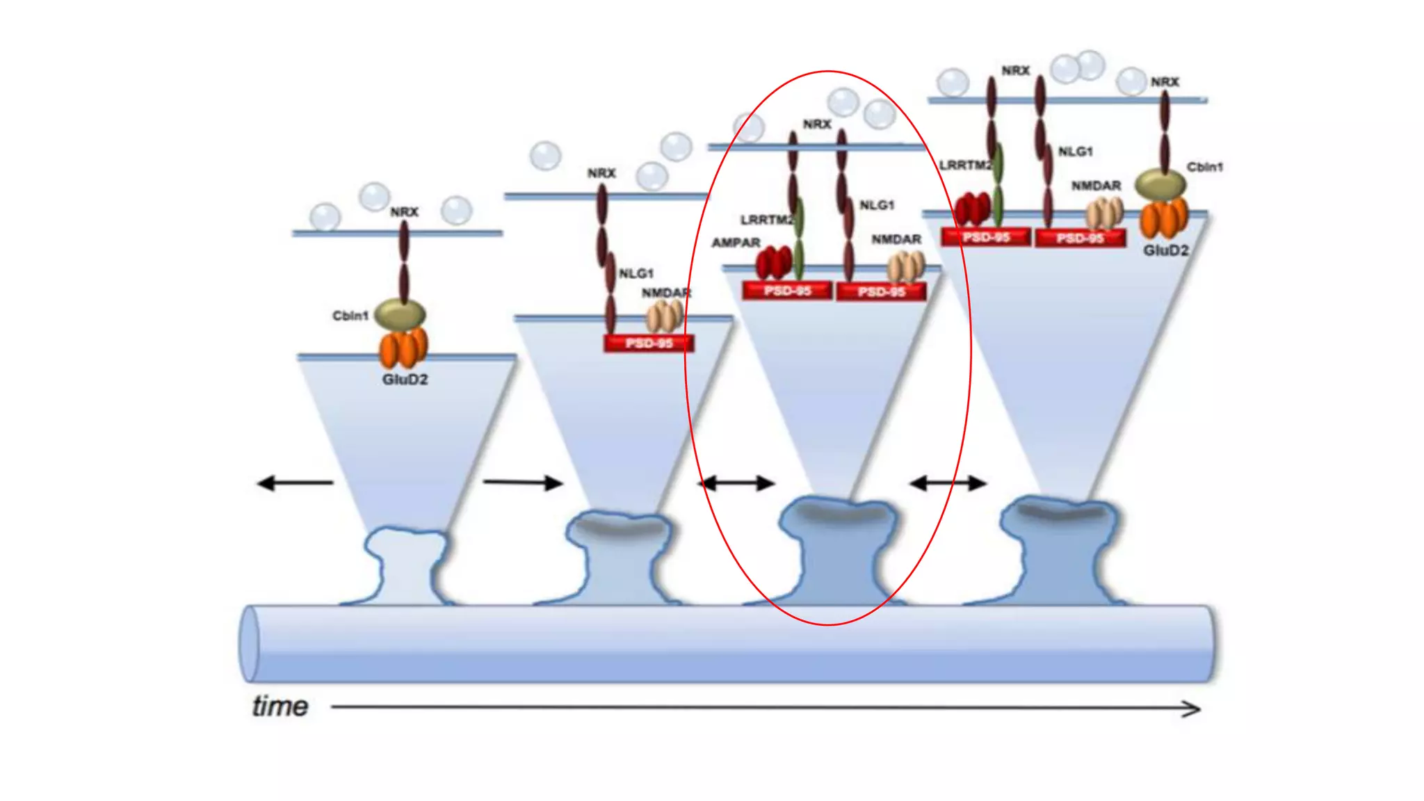 This document discusses the mechanisms of excitatory synapse maturation facilitated by trans-synaptic organizing complexes, detailing the roles of various proteins such as neurexins, AMPA, and NMDA receptors in synaptic formation and maturation. It highlights how specific proteins influence synapse efficacy and receptor recruitment, as well as the interactions between synaptic organizing proteins and their impact on neural circuitry. The document also explores the genetic and molecular pathways involved in synaptic plasticity and the implications for neurodegenerative diseases.