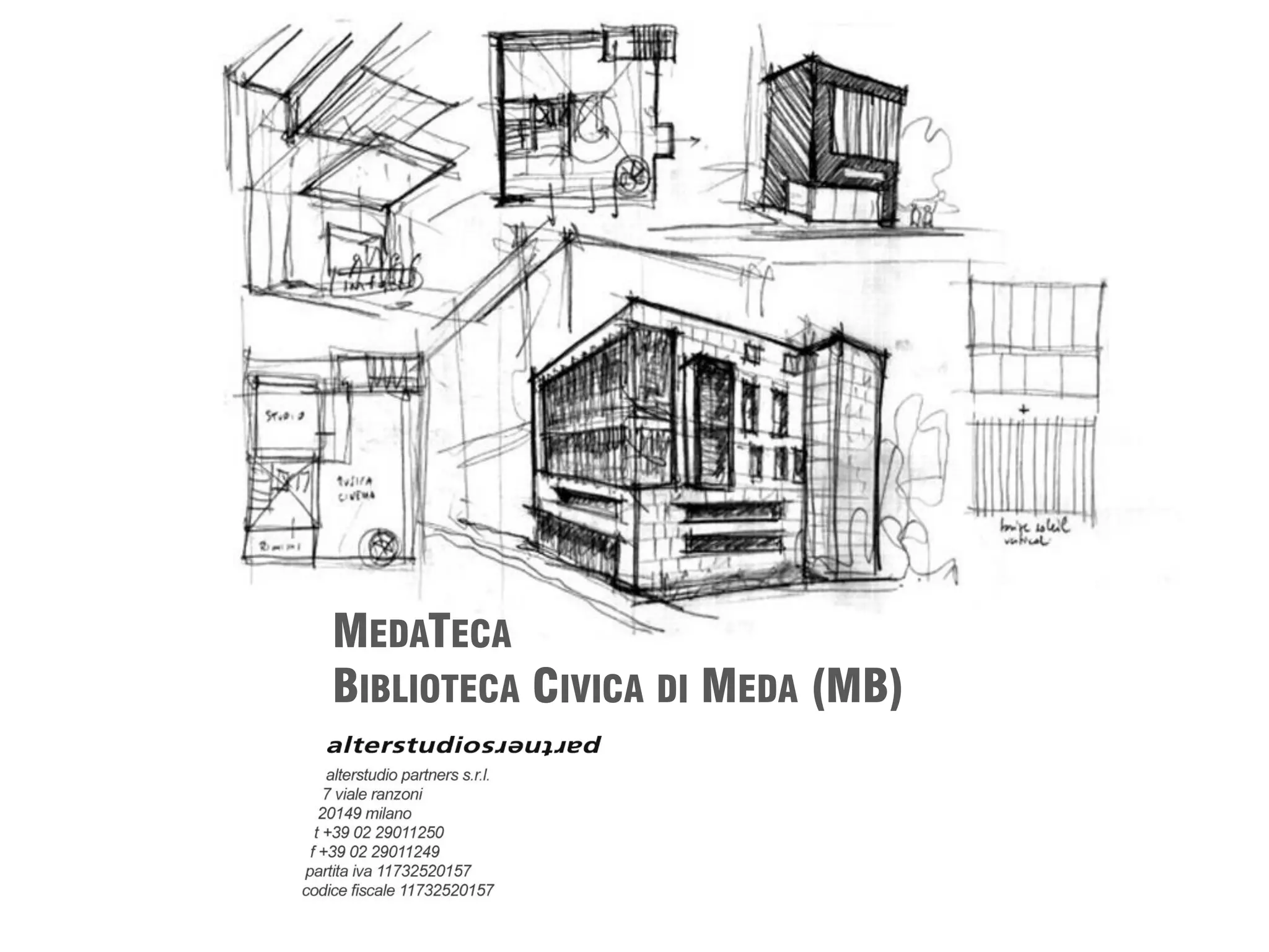 Il progetto della nuova biblioteca civica di Meda è stato realizzato tra il 2010 e il 2012, con una superficie di 1.910 mq e un costo totale di circa 2,38 milioni di euro. Il progetto, curato dallo studio Alterstudio Partners, ha ricevuto riconoscimenti, risultando finalista della Medaglia d'Oro all'Architettura Italiana nel 2012. La biblioteca rappresenta un importante intervento culturale per la comunità di Meda, combinando funzionalità e design contemporaneo.
