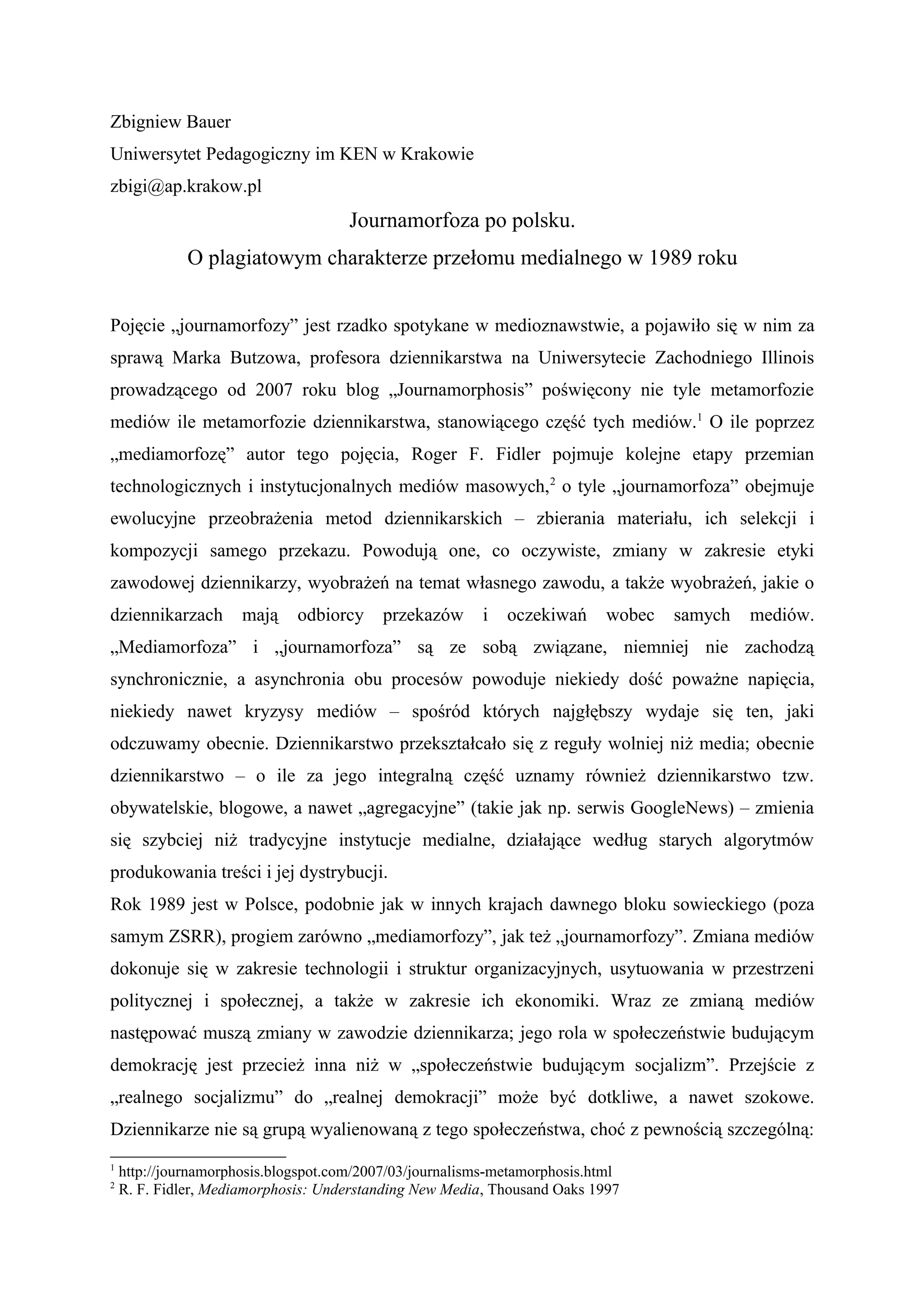 Plagiatowy charakter journamorfozy w Polsce po 1989 roku można opisywać na kilku,
