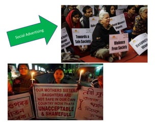 The document defines key terms related to advertising such as advertiser, advertisement, and media. It describes different forms of advertising including commercial, social, covert, and political advertising. It explains that brands differentiate products and are conveyed through visuals and words. Slogans are used to create an image and associate the brand with the product. The document outlines the process of making an advertisement and notes benefits for manufacturers, retailers, and consumers, but also discusses disadvantages such as inequality and impact on small businesses.
