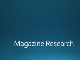 The document contains a research questionnaire about magazine reading habits and preferences. It asks respondents about their gender and magazine reading behaviors like type, frequency, and time spent. It also contains graphs showing the results of the questions, with the highest interests being in sport, music, fashion, and TV/film magazines. The document analyzes the results and concludes the target audience will be male and female students ages 16-18, as the questionnaire found most read those types of magazines and don't spend long reading each issue.