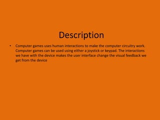 The UK has the largest video game market in Europe, generating £5.2 billion in revenues from 33 billion gamers. The industry employs over 7,000 people in the UK. Activision is one of the largest game companies in America, known for the Tony Hawk and Call of Duty franchises. Rockstar is also a major publisher, known for games like Grand Theft Auto, Red Dead Redemption, and Bully. Major game companies include Activision Blizzard, Take-Two Interactive, and Vivendi, which owns several studios and publishes many popular game franchises.