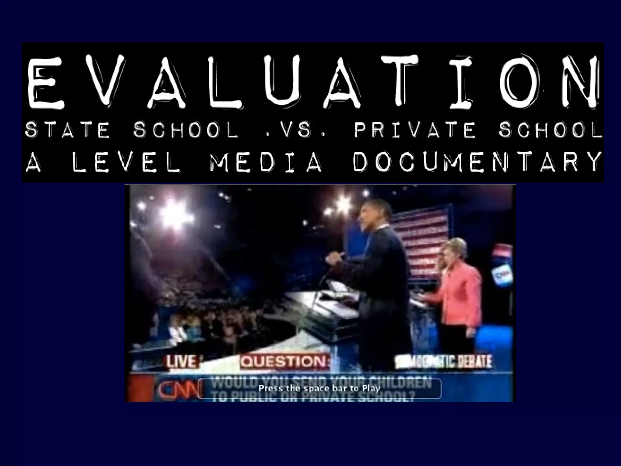 Our media product uses documentary filmmaking conventions to compare public and private school education in the UK. We conducted research on existing documentaries and documentary makers to inform our expository style. Interviews with students and teachers from both school types along with footage of the school facilities were filmed and edited together with voiceovers and music to expose perspectives on the differences. Ancillary materials like a magazine article and advertisement were also created to promote the documentary.