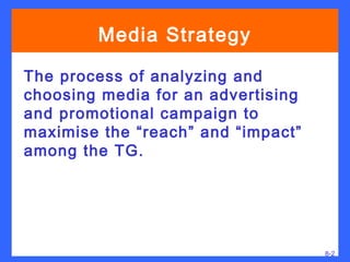 The document discusses traditional media channels used for advertising campaigns. It provides details on television, radio, outdoor, print magazines and newspapers. It describes the advantages and disadvantages of each channel and notes who is involved in the media selection process such as media planners, buyers and clients. The document also briefly discusses developing logical media combinations and shifts toward non-business media for B2B advertising.