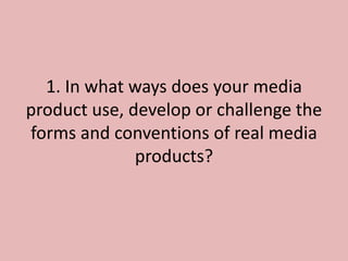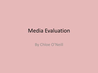 The document provides an analysis by Chloe O'Neill of their media evaluation project creating a music magazine called "BURST." It includes links to research conducted on magazine conventions and influences. Chloe discusses representing their target audience of teenage girls, choosing Bauer Media as the distributor due to its similar magazines, and techniques used to attract the audience like colorful imagery and informal language. The analysis reflects on skills developed using software like Paint.net and time management through blogging. Overall, Chloe feels the final product fulfills the task of creating a new music magazine reasonably well.