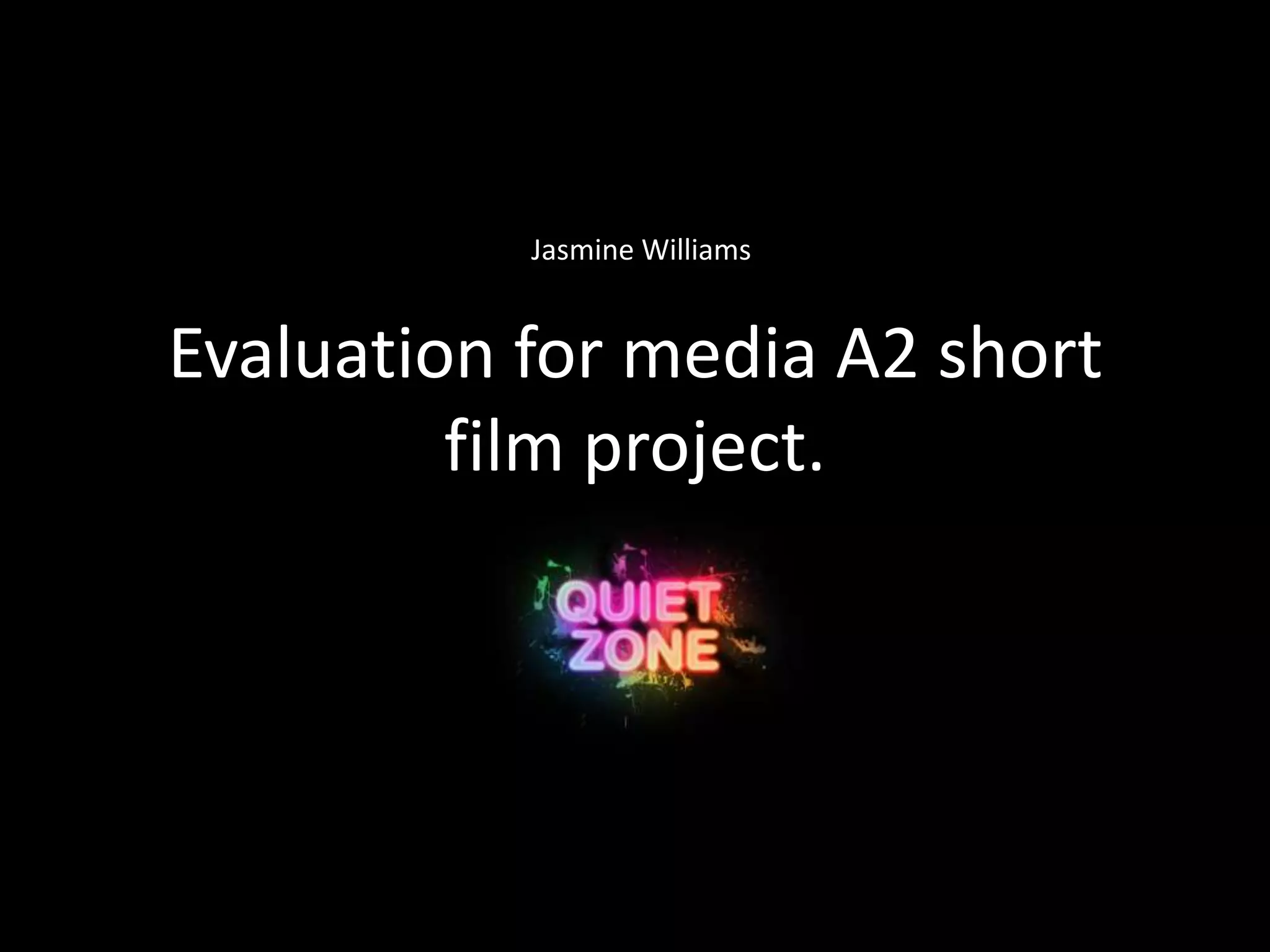 Jasmine Williams evaluated her A2 media project short film and ancillary texts. She was inspired by films like "Meet the Parents" and "500 Days of Summer" but her film took on more of a "video diary" feel. Feedback from audiences and tutors helped improve the film during the editing process when files were corrupted. Mac books and software like Photoshop, Final Cut Pro, and Tumblr were used extensively in the research, planning, filming, and editing stages. Overall, Jasmine is happy with the project and feels she has gained valuable computing and media production skills over the past year.
