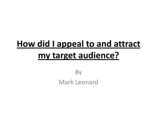 - To appeal to their target audience of mainly young males interested in rock music, the author made the title and tagline bolder and used darker colors based on feedback. They also included more images as preferred by the audience.