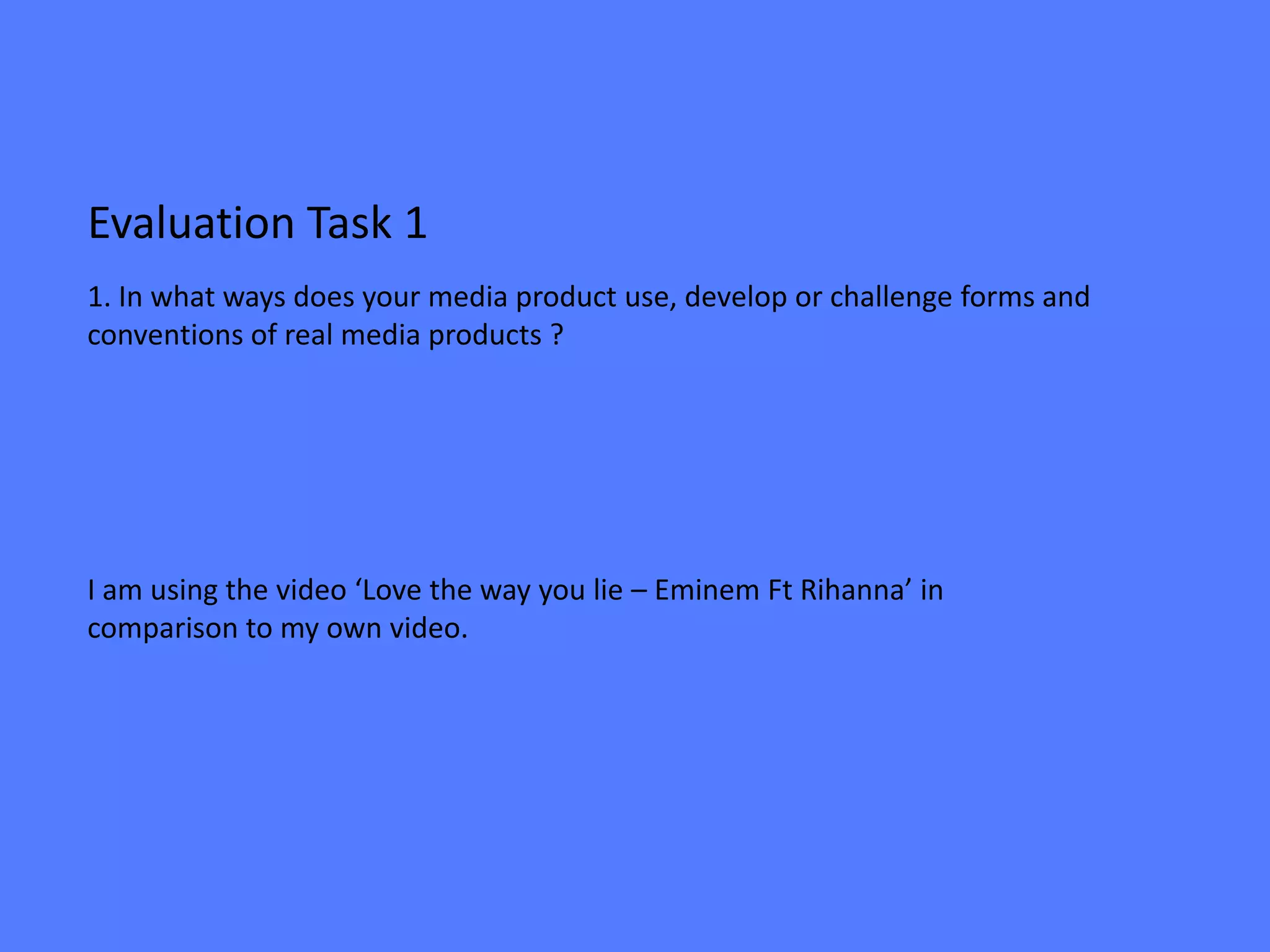 This document summarizes key shots from the student's music video and compares them to shots from popular music videos to demonstrate how their video uses, develops or challenges conventions of real music videos. Shots are described that show links between lyrics and visuals, represent the artist, illustrate the music genre, contain intertextual references, demonstrate camera use, lighting, mise-en-scene, and shots inspired by other music videos. Overall the analysis provides examples of how the student's video engages with techniques from mainstream music video production.
