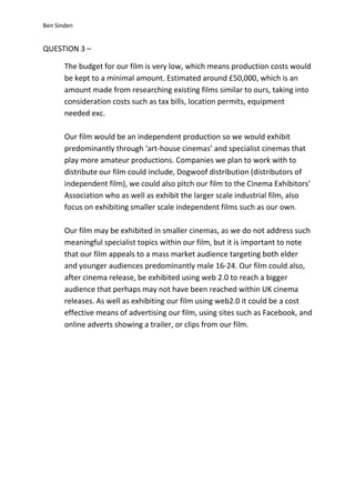 The estimated £50,000 budget is low for an independent production. Distribution plans include art house cinemas and specialist exhibitors. Advertising will utilize social media and online platforms to reach broad audiences