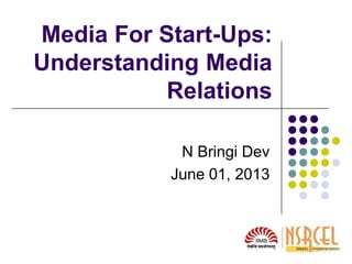 This document provides guidance on media relations strategies for startups. It discusses the media landscape, how news is produced, and types of media interactions. The key points are: