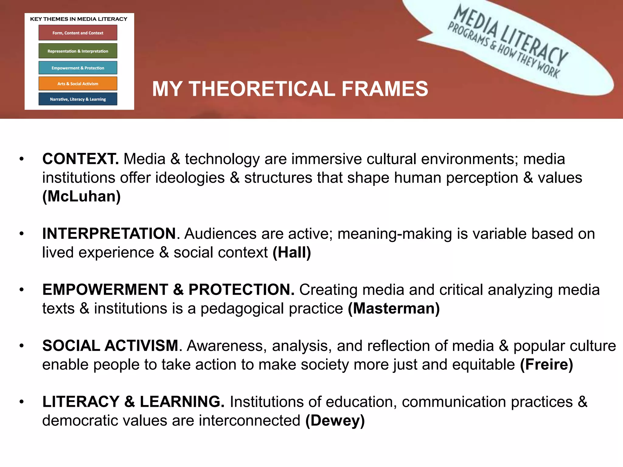 The document reflects on various quantitative approaches to measuring media literacy, emphasizing the importance of partnerships among researchers, practitioners, and institutions for shaping effective research. It explores program evaluation methods and highlights the significance of student engagement in media creation, which enhances communication and technical skills. Additionally, it discusses the impact of media literacy education on student attitudes, self-expression, and critical analysis of media messages.