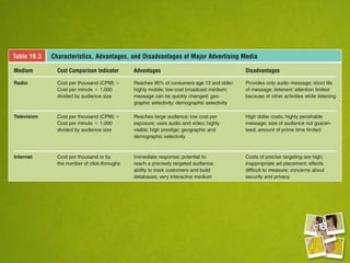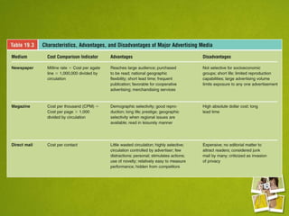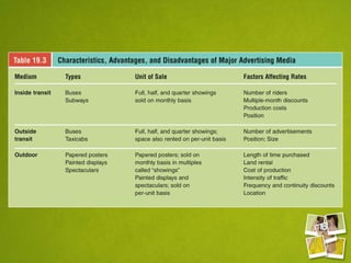 Media planning involves setting objectives for reach, frequency, and weight to deliver messages to target audiences. A media strategy is then developed considering the target, budget, scheduling, creative elements, and weight of delivery across different media. Media buying implements the strategy by selecting specific media vehicles, negotiating placements, and monitoring performance. Research is crucial to the planning and buying processes to understand audiences, costs, and media environment.