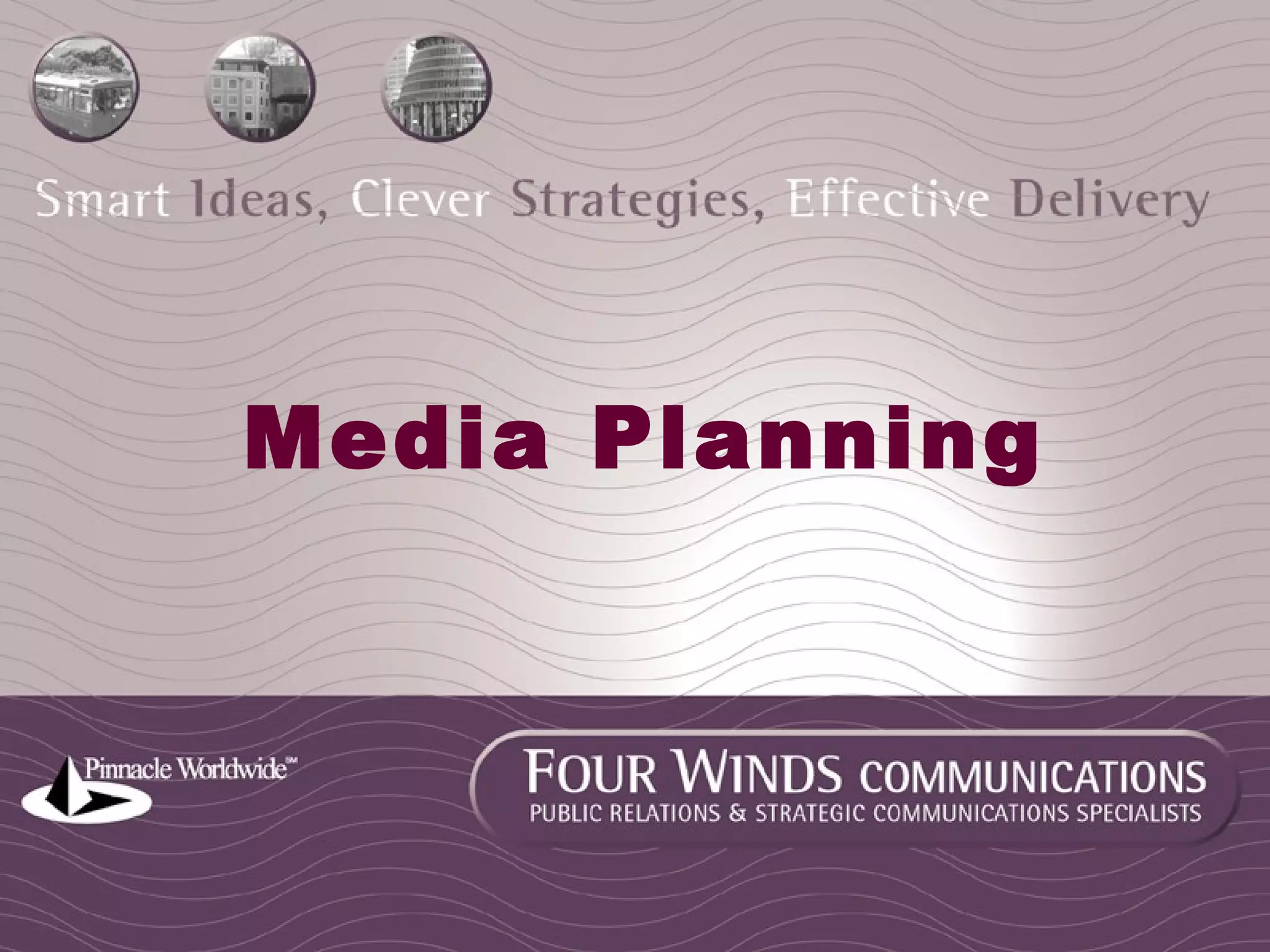 A media plan must understand the environment, have clear objectives, and understand the nature of different media. It should follow agreed policy, provide training to understand different media, and have clear and memorable messages. The plan should include a background document answering key questions, a calendar of events, and guidance on media releases, conferences, and monitoring effectiveness.