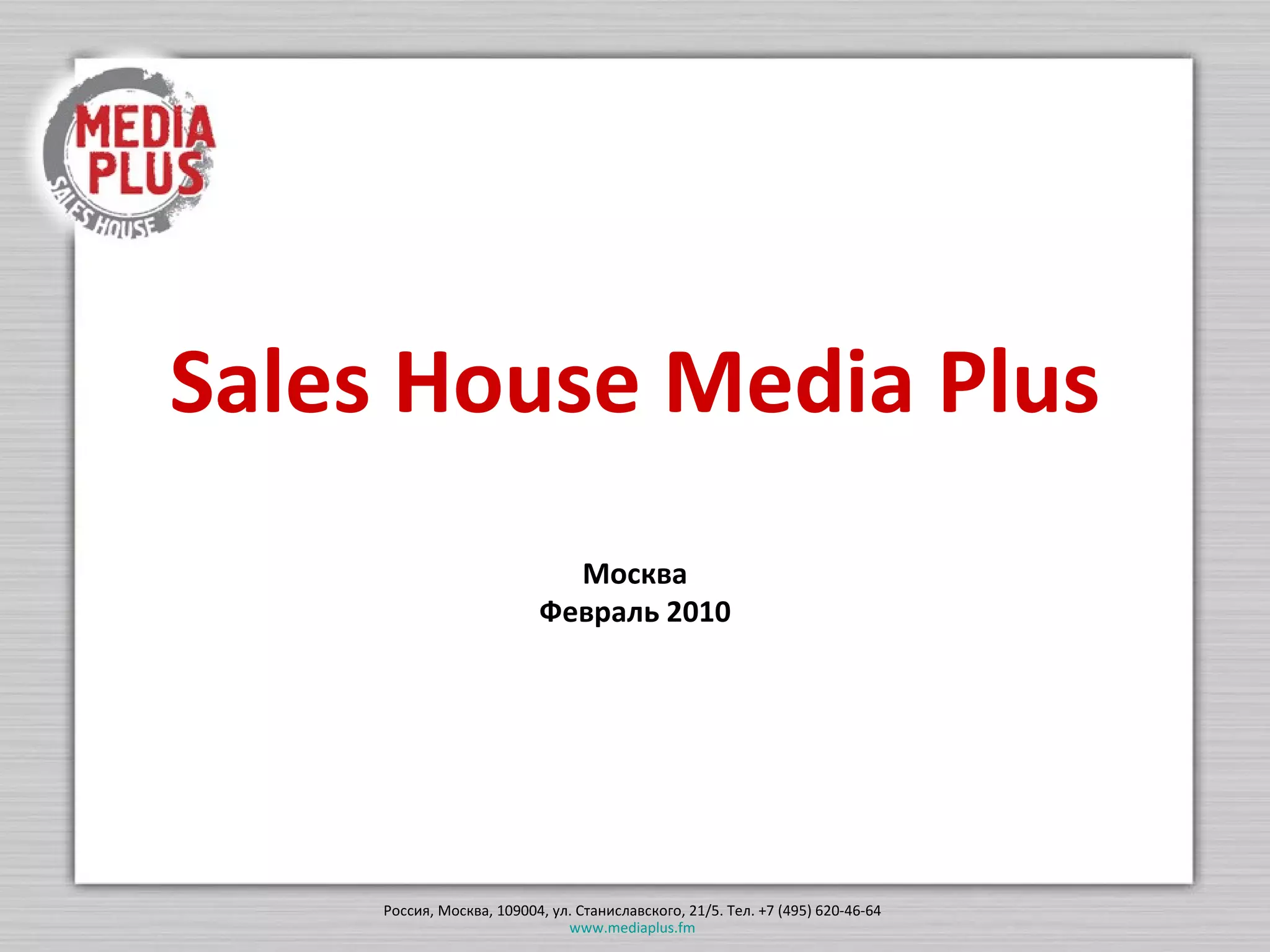 Документ представляет собой маркетинговый анализ компании Sales House Media Plus, которая является частью международной стратегии Lagardere в сфере радио и интернет-рекламы в России. Указывается на лидерство компании по доле аудитории и трафику в Рунете, а также предлагаются рекламные возможности и новые форматы размещения для целевых аудиторий. Документ включает статистику, данные о доходах и рекламные стратегии для эффективного охвата рынка.