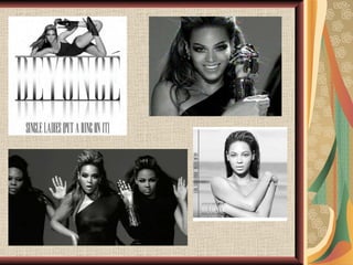 3) Beyoncé's "Single Ladies" video uses a simple concept of Beyoncé and two dancers performing a perfectly choreographed routine in matching outfits against a plain white backdrop.