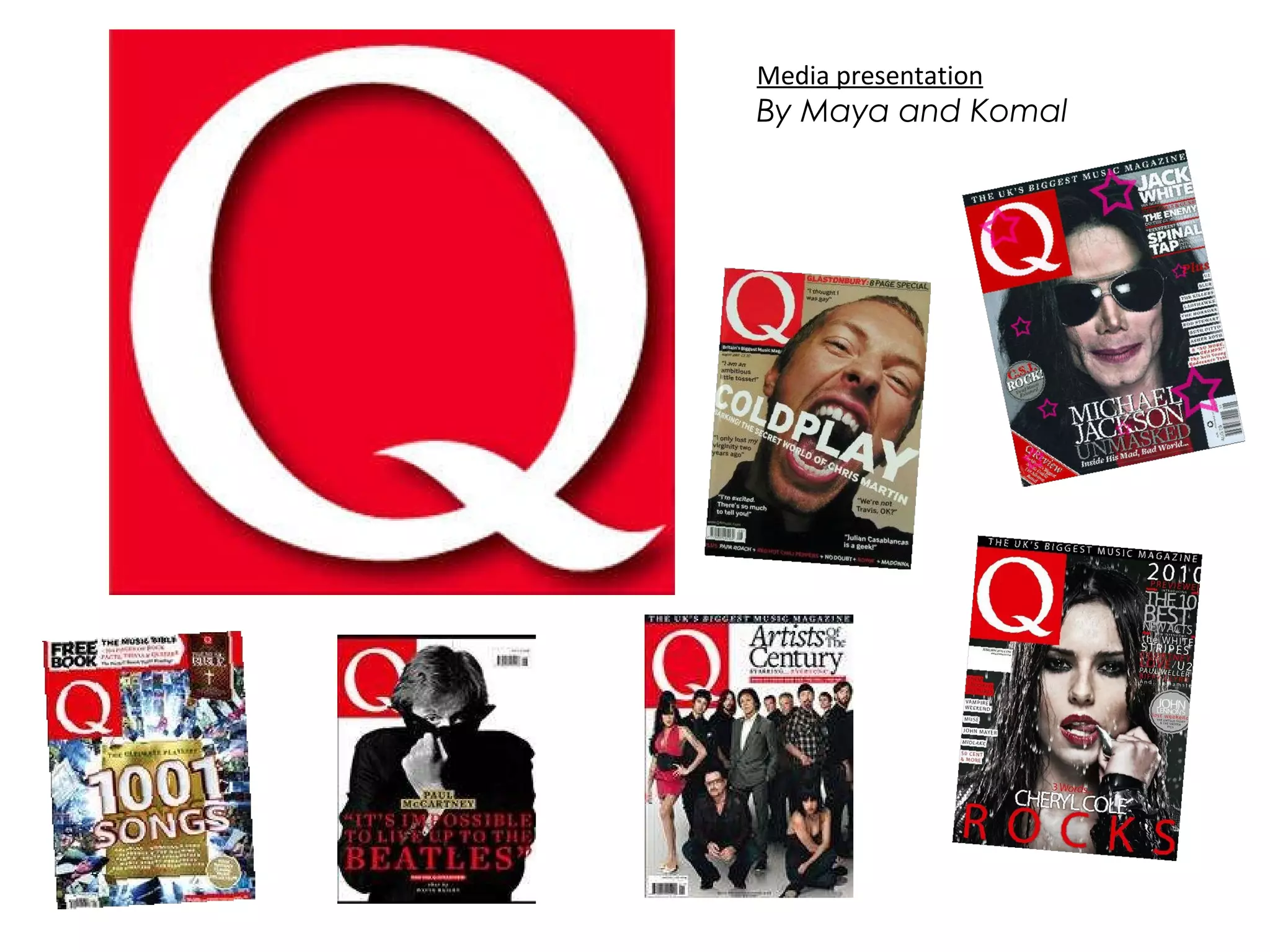 The front cover of Q magazine features Jay-Z, Lady Gaga, and Dave Grohl to represent different music genres. Jay-Z is positioned in front to show his power, while Lady Gaga is dressed sexually to please male audiences. The magazine logo is prominently displayed in the top left corner to attract readers' eyes. The magazine targets a niche market of mostly urban males ages 22-32 from all ethnicities and social classes with a general interest in various music genres.