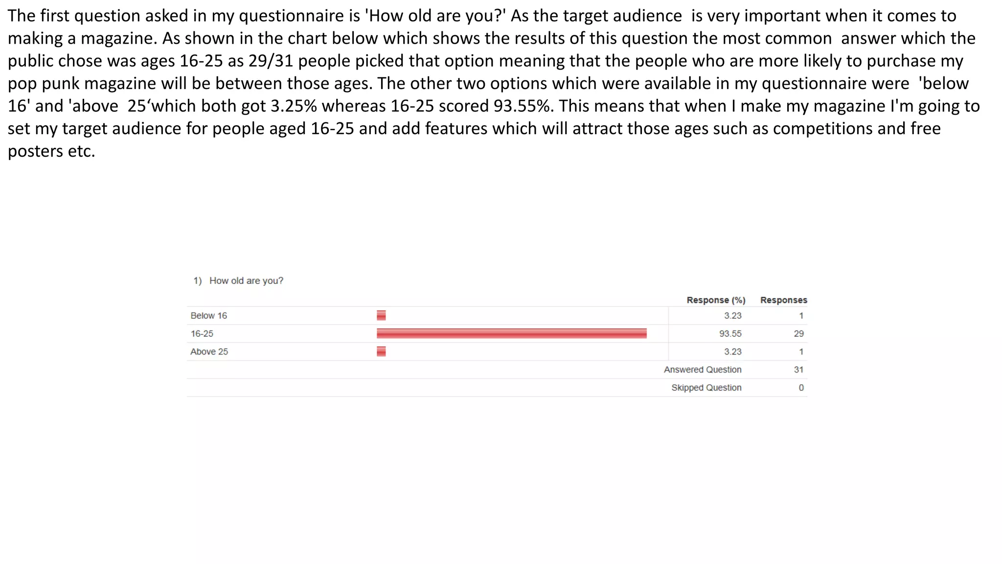 The document summarizes the results of a 16 question survey about music magazine preferences. Key findings include:
