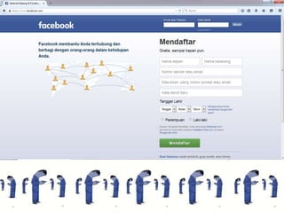 Dokumen tersebut membahas tentang Facebook sebagai salah satu layanan jejaring sosial yang digunakan untuk berinteraksi secara sosial. Dokumen tersebut juga menjelaskan beberapa fitur utama Facebook seperti halaman Facebook yang digunakan brand-brand untuk berinteraksi dengan penggemar, serta cara mempromosikan produk di Facebook melalui konten menarik dan iklan Facebook.