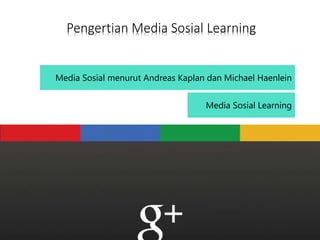Dokumen ini membahas tentang media sosial learning, termasuk pengertian, kelebihan, kekurangannya, sejarah perkembangan beberapa media sosial populer, karakteristik, dan fitur-fitur dasar media sosial.