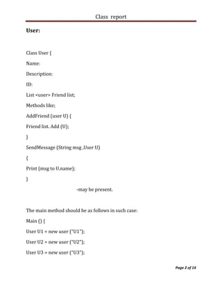 The document describes the mediator pattern for implementing a chatting application. It discusses problems with a direct communication approach between users and presents a solution using a ChatServer class as an intermediate mediator. The ChatServer stores user information and routes messages, allowing for two-way communication between online users and addressing issues like message delivery to offline users. Key aspects of the mediator pattern are highlighted, including how it enables more extensible communication across multiple machines compared to the observer pattern. Pseudocode is provided for the ChatServer, User classes and their collaboration through the mediator to enable basic chat functionality.