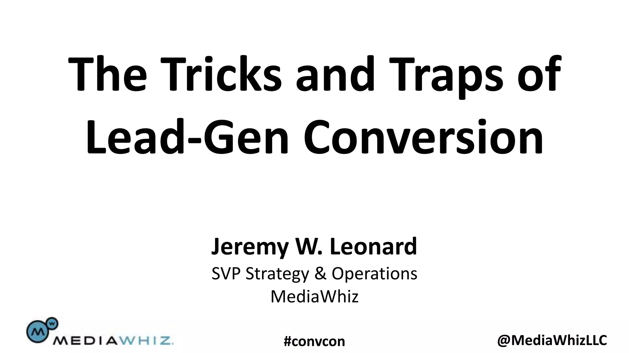 The document discusses the challenges and strategies associated with lead generation conversion in digital marketing, focusing on various case studies, including education and auto insurance sectors. It highlights the importance of effective call-to-action, mobile navigation, and understanding consumer psychology, alongside specific recommendations for optimizing websites to enhance conversion rates. Additionally, it stresses the significance of continuous testing and monitoring of KPIs to drive better performance in lead generation campaigns.
