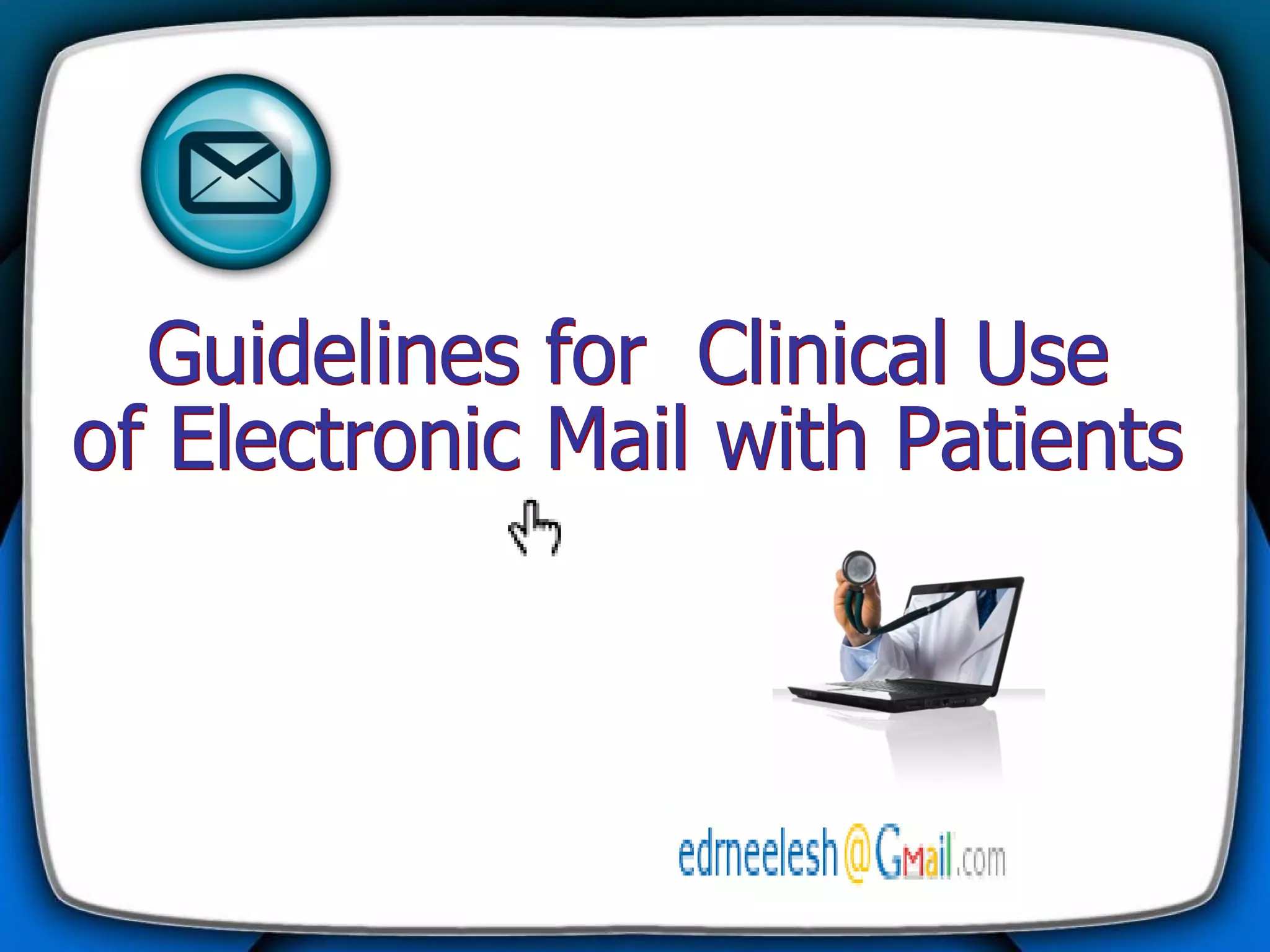 This document provides guidelines for the clinical use of electronic mail with patients. It outlines advantages such as accelerated communication, convenience, and the ability to simultaneously send health information to many patients. However, it also stresses the importance of maintaining patient privacy and obtaining informed consent. The guidelines recommend identifying the patient and category of email, printing and filing all messages, using auto-reply confirmations, and avoiding urgent matters or sharing of accounts over unsecured networks.