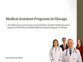 The document lists and provides details on 4 CAAHEP-accredited Medical Assistant programs in Chicago:
