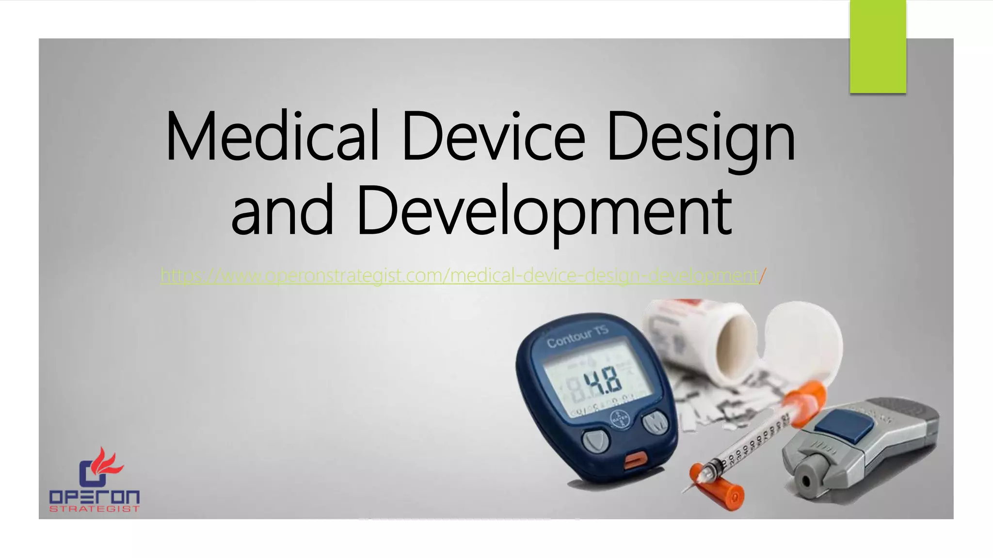 The document outlines the importance of rigorous design and development in medical device manufacturing to meet quality expectations and prevent customer complaints and device failures. It emphasizes the need for compliance with regulations like ISO 13485:2016 and 21 CFR Part 820, highlighting that poor design is a major cause of product recalls and safety issues. Key stages in the design process include design control, verification, and validation to ensure safety and efficacy, especially for drug-device combination products.