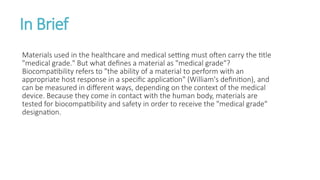 "medical grade." But what defines a material as "medical grade"?