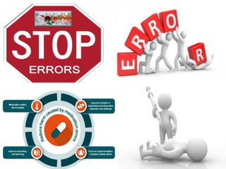 Medication errors are preventable events that can harm patients. This presentation discussed medication errors, including classifications, types, causes, and strategies to prevent them. It summarized key points about prescribing errors, dispensing errors, administration errors, and monitoring errors. The presentation emphasized the importance of following proper procedures, such as double checking orders and medications, reconciling medications, and educating staff on policies to minimize errors. Overall, the presentation aimed to increase awareness of medication errors and promote safe practices to protect patients.