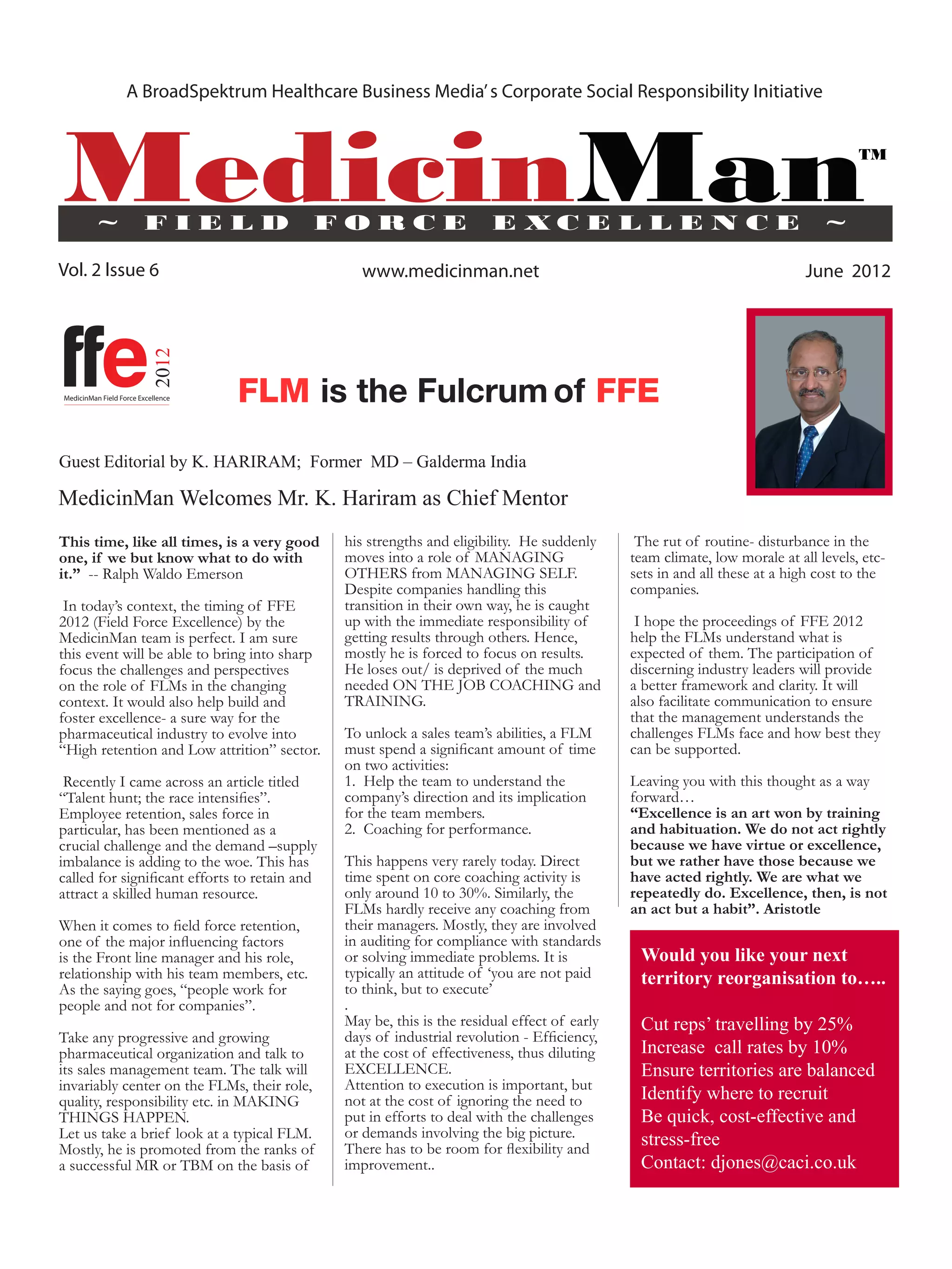 The document discusses the changing role of frontline managers in the pharmaceutical industry due to emerging trends like increased use of technology, personalized medicine, and changing customer expectations; it highlights the importance of coaching and training for frontline managers to help them adapt to these changes and ensure field force excellence; and it announces an upcoming event on field force excellence that will bring together industry experts to discuss these topics and how to foster excellence through the human resources approach and the role of the second line manager.