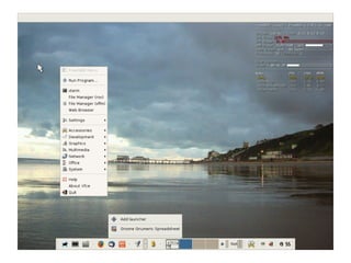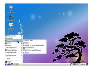 Documentul compară diverse medii grafice pentru Linux, inclusiv lxde, xfce, e17, gnome și kde, evidențiind avantajele și dezavantajele fiecăruia. Lxde este recomandat pentru calculatoare cu resurse slabe, în timp ce gnome și kde necesită resurse mai mari și oferă personalizare suplimentară. Fiecare mediu are caracteristici unice, de la viteza de operare la aspectul grafic.