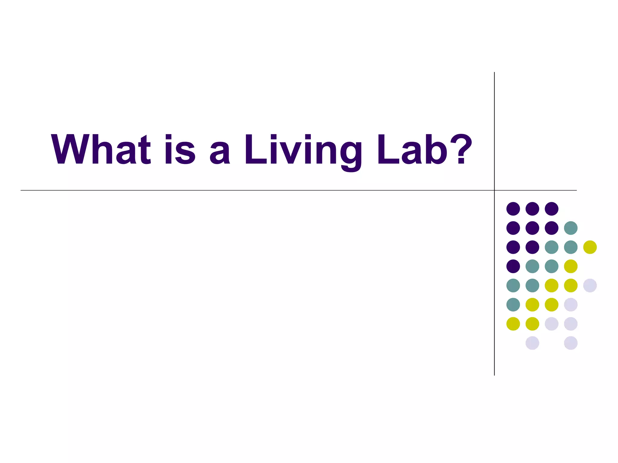 1. The document discusses Living Labs, which are user-driven open innovation ecosystems that involve citizens, businesses, and government working together on research and development.
