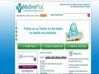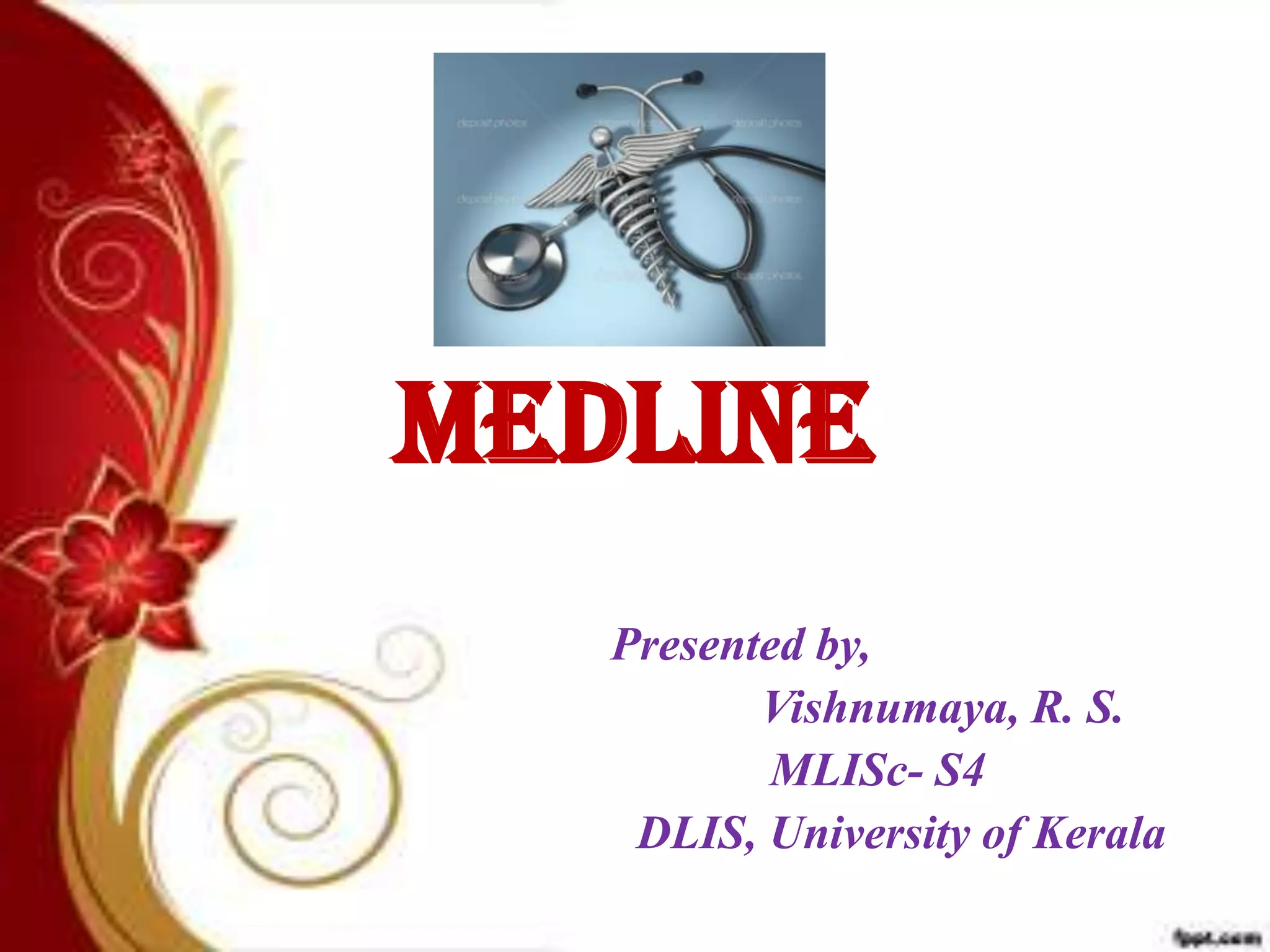 MEDLINE is a literature database of biomedical information introduced in 1971 and maintained by the United States National Library of Medicine. It includes over 6,000 biomedical journals that are indexed and searchable via PubMed. MEDLINE began as MEDLARS, a computerized storage and retrieval system operated by the NLM since 1964 to index and provide access to medical literature. It has evolved to include additional databases and online services like PubMed and MedlinePlus.