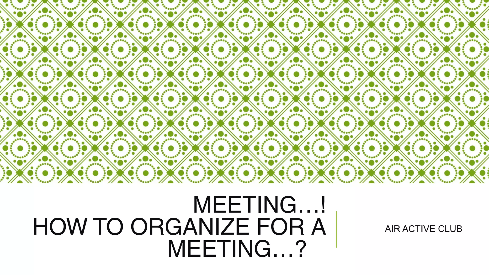 This document provides guidance on organizing and running effective meetings. It emphasizes that meetings should be necessary and have clear objectives. When deciding to hold a meeting, the organizer should determine who needs to attend and the purpose. The key elements for an effective meeting are having a purpose, inviting the right participants, using an appropriate structure and techniques, choosing a good location and time, creating an agenda, assigning responsibilities, and sending confirmations. During the meeting, the leader should keep it focused on the agenda, control dominating individuals, and conclude by summarizing decisions and next steps.