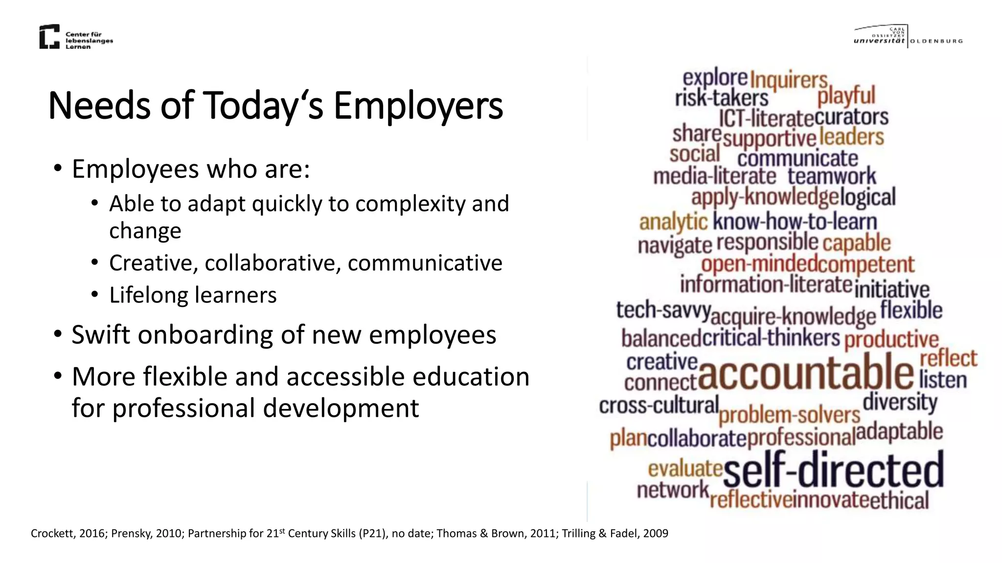 The document discusses the importance of continuous professional development to meet the evolving demands of employers, highlighting the need for employees who are adaptable, collaborative, and lifelong learners. It emphasizes solutions such as project-based learning and e-portfolios to prepare students for the complexities of the workforce. Additionally, it raises questions on effective theories and practices for developing essential skills in students.