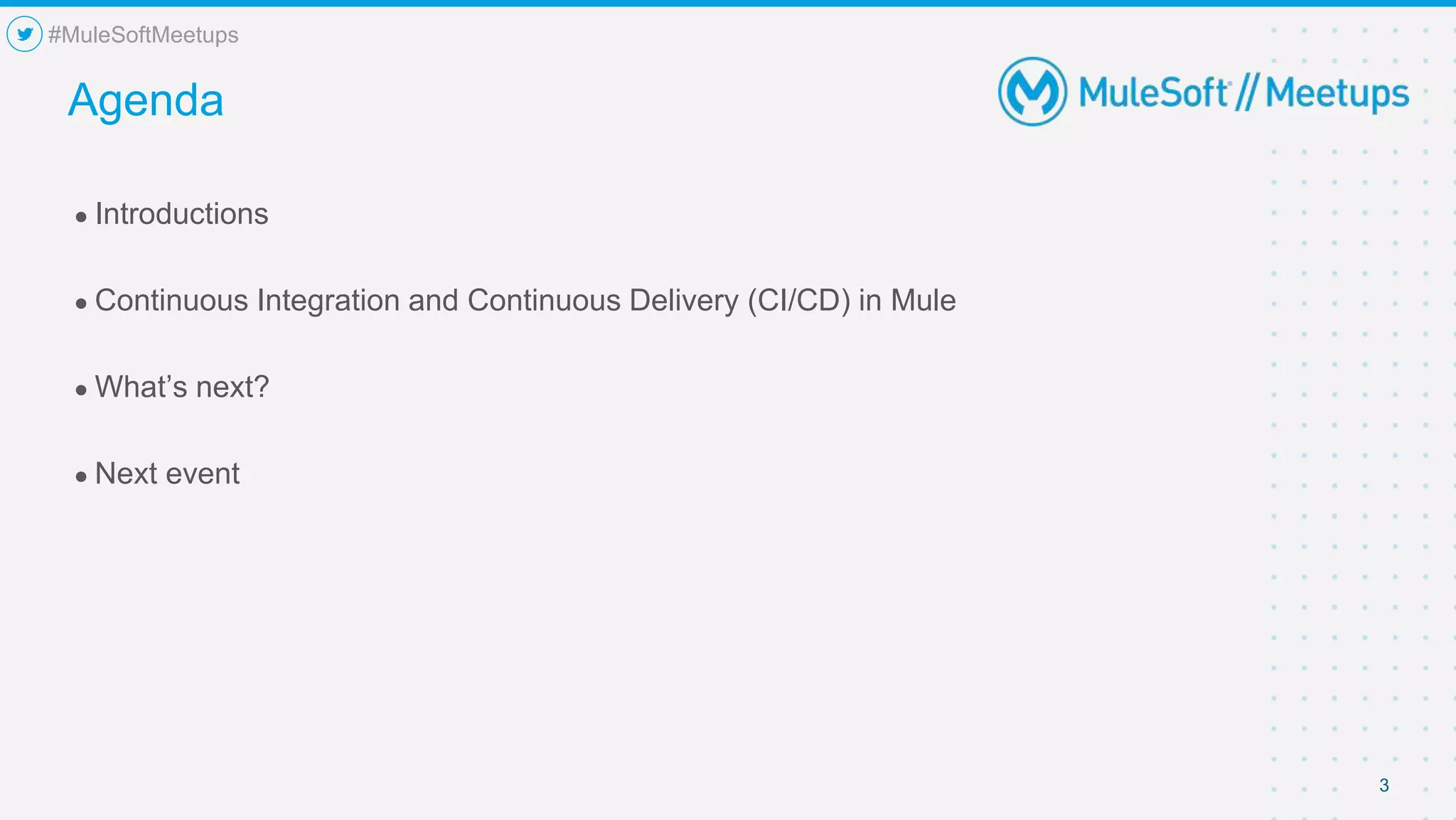 The document outlines a meetup discussing Continuous Integration and Continuous Delivery (CI/CD) in MuleSoft, highlighting the importance of integrating code changes and automating application deliveries. Key speakers include Mulesoft developers and architects who discussed CI/CD benefits, pipeline tools, and Git branching strategies. The meetup also provided details for upcoming events and encouraged participants to provide feedback.
