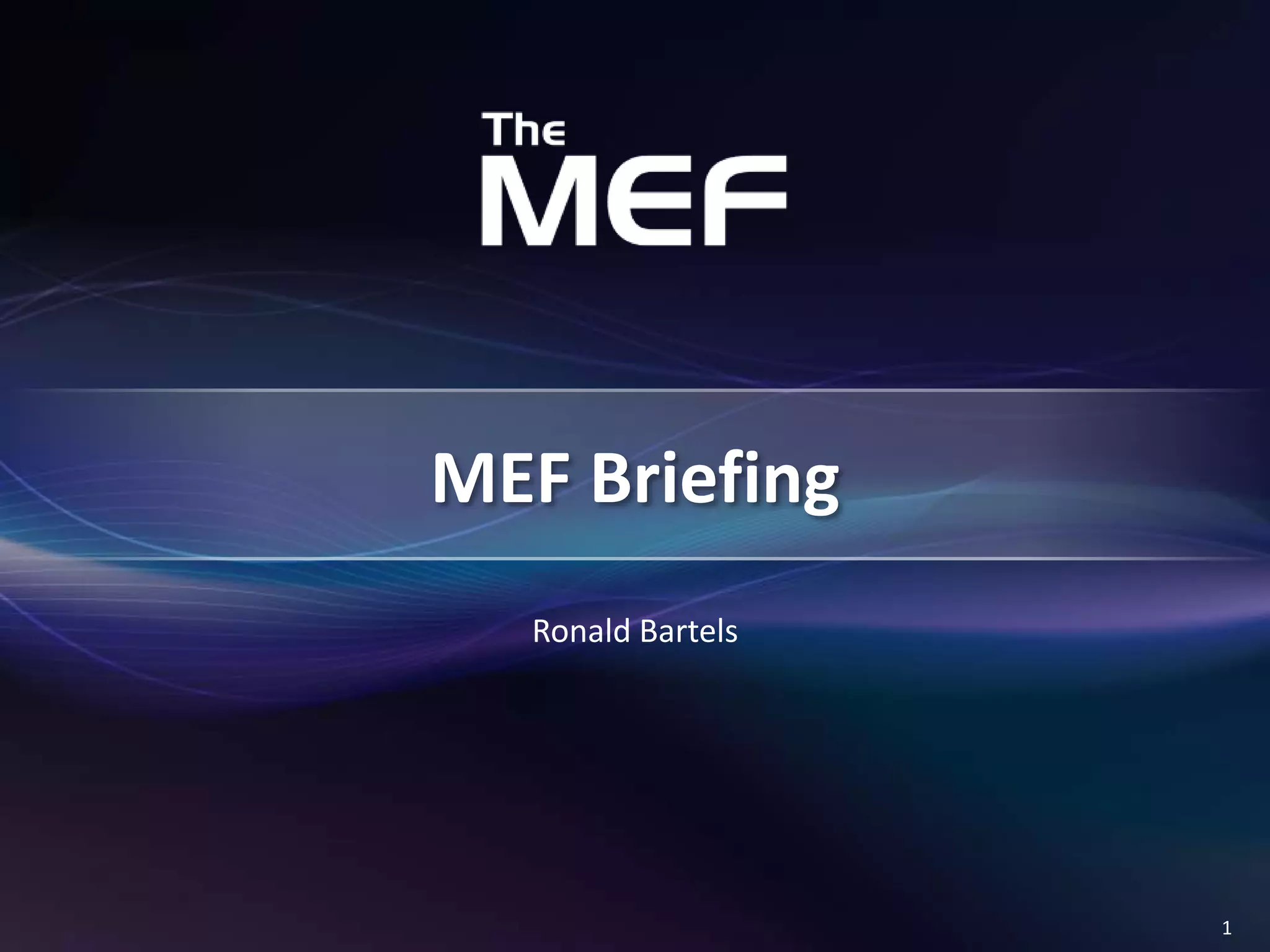 This document summarizes the activities of the Metro Ethernet Forum (MEF). It discusses the MEF's work developing carrier Ethernet standards over the past 12 years, including 40 completed specifications. It provides an overview of the MEF's Certification Program and the growth of carrier Ethernet services. Finally, it introduces the new CloudEthernet Forum for addressing Ethernet scalability within and between data centers.