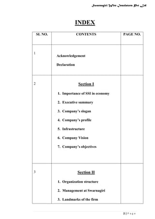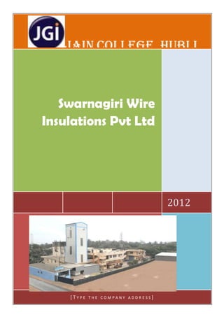 Swarnagiri Wire Insulations Pvt Ltd is a private limited company located in Hubli, Karnataka, India that manufactures super enameled copper winding wires. It was established in 1987 and has 45 employees. The company produces around 10-12 tonnes annually and has expanded its production capacity over time. It aims to provide high quality wires and maintain strong customer relationships. Its vision is to lead in its industry through world-class manufacturing practices and a commitment to quality, customer service, and supplier value.