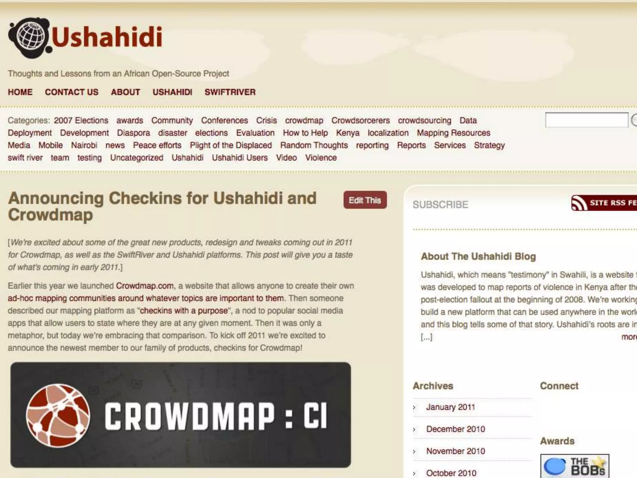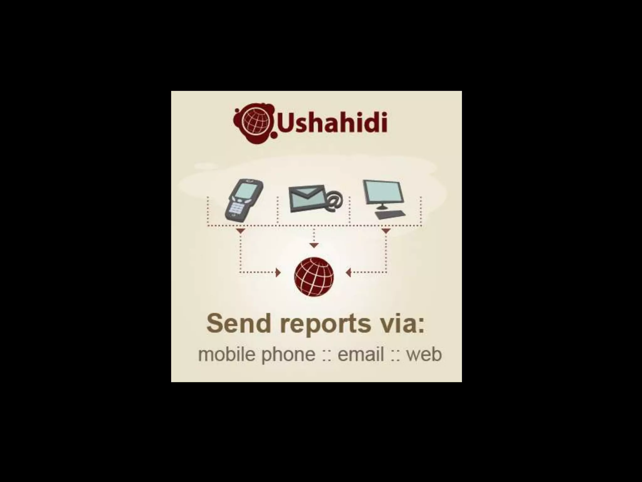 Ushahidi was created in 2008 to map reports of violence in Kenya after post-election conflict. It uses crowdsourcing to collect eyewitness reports via SMS, email or web and displays them on an interactive map. The platform has since been used to map crises around the world including conflicts in Libya and natural disasters coordinated by humanitarian groups. While the technology provides a tool, the real work is done by volunteers and communities who use the platform to gather and share vital information during emergencies.