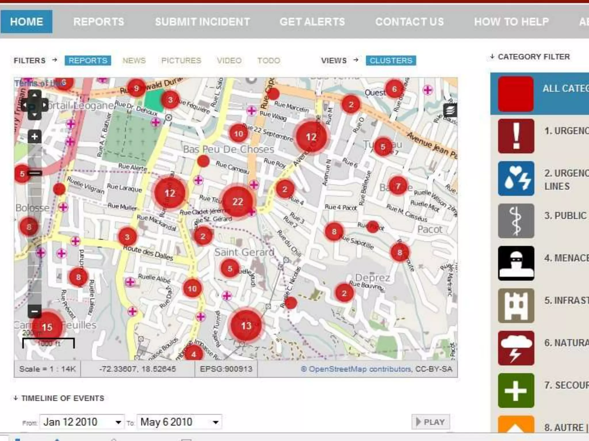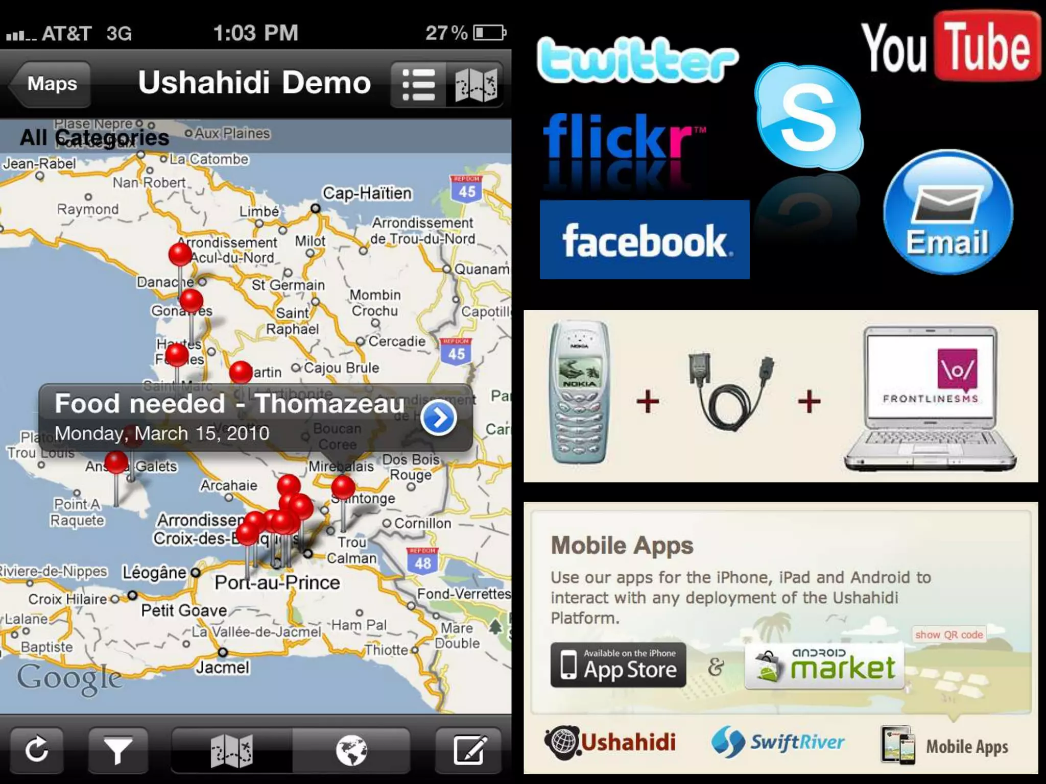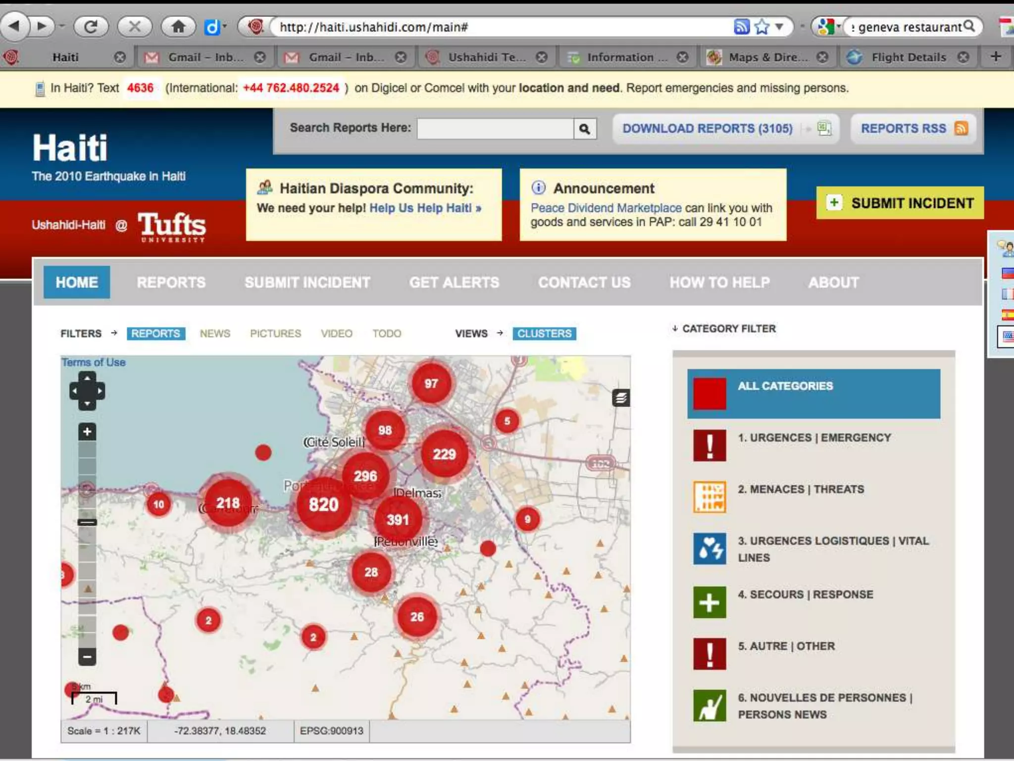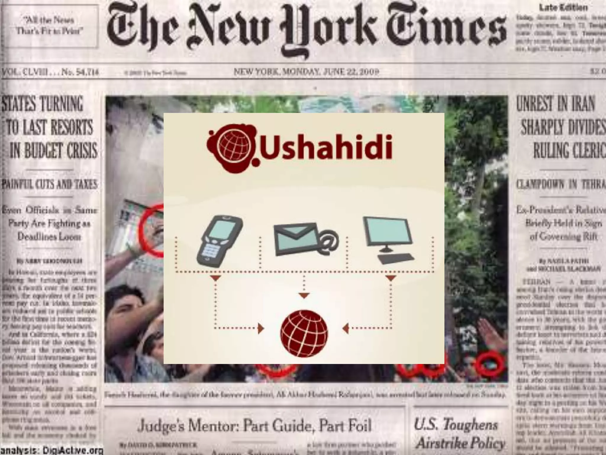 The document discusses the Ushahidi platform's role in crisis mapping and its impact on saving lives during events such as the Haiti earthquake. It emphasizes that while Ushahidi is a crucial tool, it accounts for only 10% of the overall solution to crisis management. The narrative includes reflections and contributions from various individuals involved in the initiative.