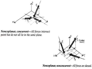 2) A free body diagram shows all external forces acting on a particle or rigid body and is essential for writing equations of equilibrium.