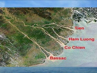 The Mekong River is a trans-boundary river in Southeast Asia that flows through China, Myanmar, Laos, Thailand, Cambodia and Vietnam. It is an important resource for the 60 million people who live in its lower basin, providing water, irrigation, transport and food. However, the river is also facing threats from pollution, habitat destruction, and large hydroelectric dams which could disrupt the ecosystem. Managing development while protecting the environment and livelihoods of those who rely on the Mekong River is an ongoing challenge.