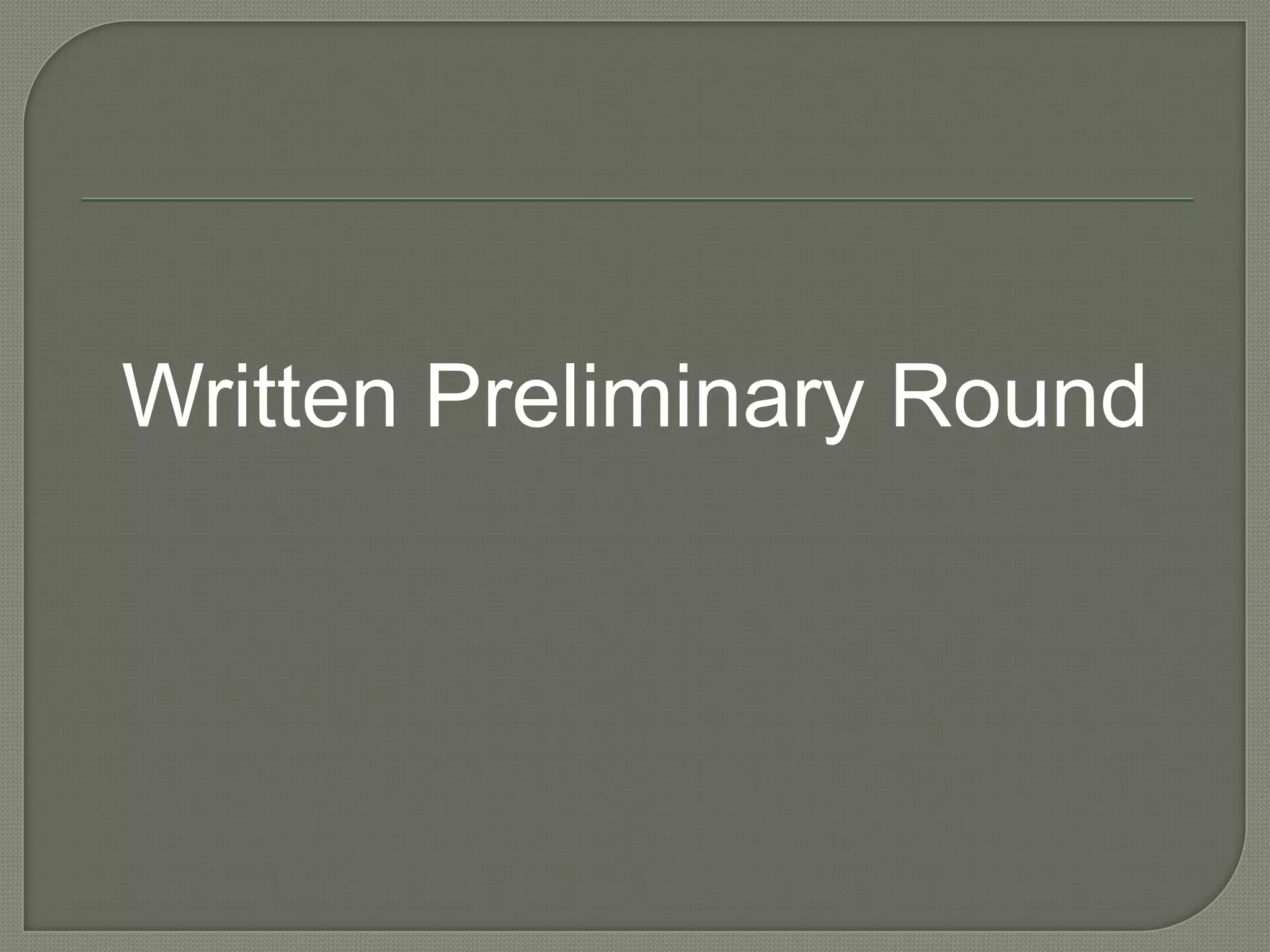 The document provides instructions for the written preliminary round of a quiz competition. It states that the round will consist of 30 questions, with each correct answer worth 1 point and no negative points for incorrect answers. The top 8 teams with the highest scores will qualify for the final stage of the quiz, and in the case of a tie the team that answers more questions marked with an asterisk will advance.