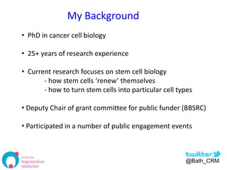 Professor Melanie Welham discusses the importance of communicating research beyond academia, emphasizing the shift in academic engagement with beneficiaries, particularly in stem cell research. She highlights the benefits of involving patients and the public in research, while also addressing barriers faced by both patients in accessing information and academics in understanding patient needs. Strategies such as lay summaries and innovative solutions are suggested to enhance engagement.