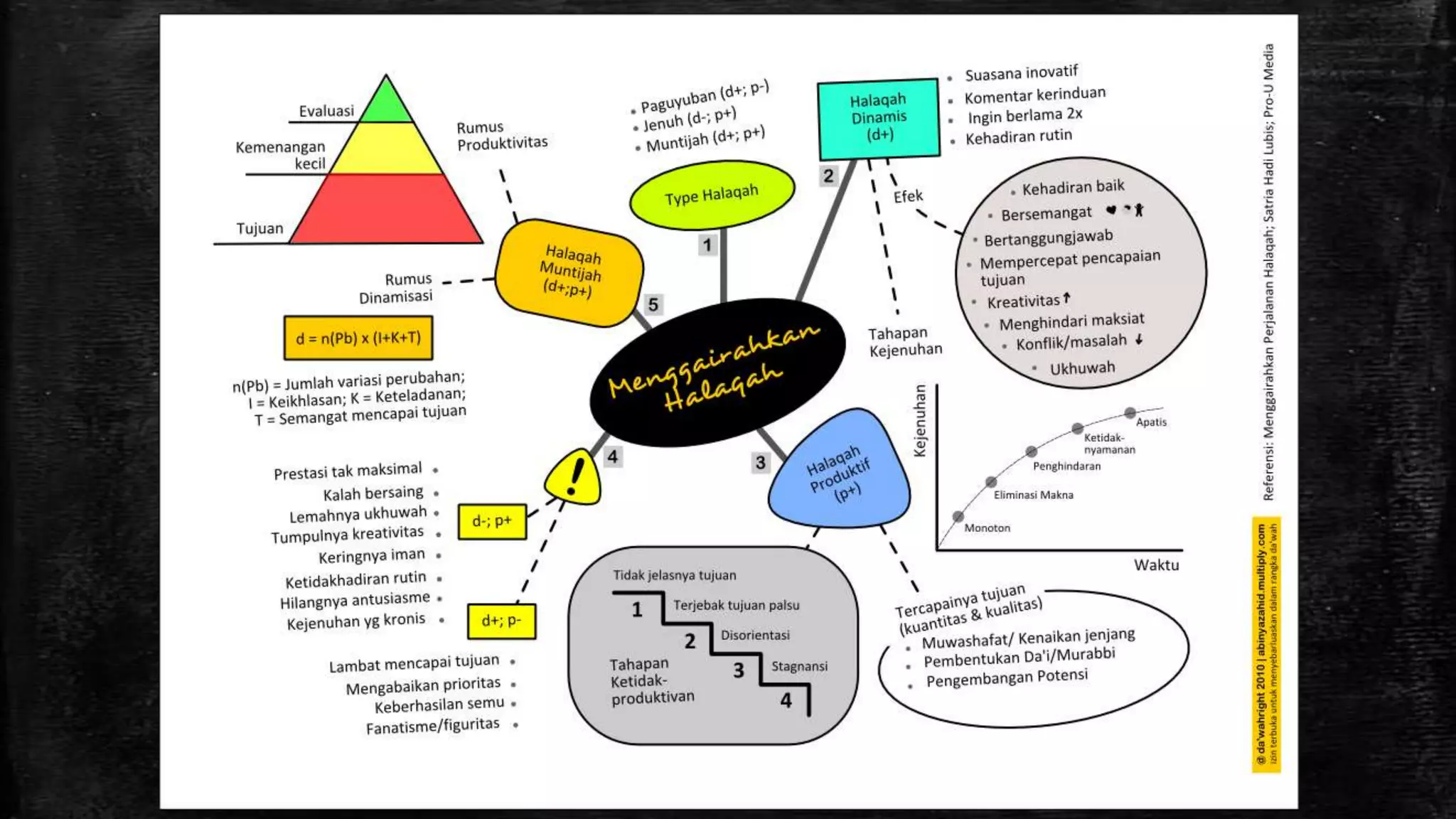 Dokumen ini menjelaskan tentang halaqah muntijah, yaitu kelompok belajar yang bertujuan meningkatkan keimanan dan pengetahuan anggota melalui metode yang interaktif dan dinamis. Ditekankan pentingnya peran murabbi dan keterlibatan anggota dalam pengelolaan halaqah serta perlunya pemantauan ibadah dan dukungan emosional antar anggota. Terdapat juga tips-tips untuk menjadikan halaqah produktif, termasuk pengaturan waktu, adab, dan dokumentasi hasil pertemuan.