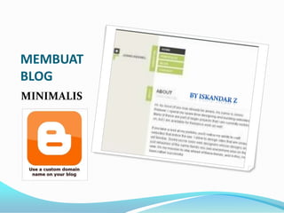Dokumen ini menjelaskan cara membuat blog minimalis dengan berbagai fitur seperti recent post, recent comment, dan forum diskusi. Pengelola dianjurkan untuk memilih nama log yang simpel dan mempersiapkan konten seperti gambar atau tulisan. Informasi ini bertujuan untuk memaksimalkan fungsi blog sebagai media informasi, komunikasi, dan promosi.
