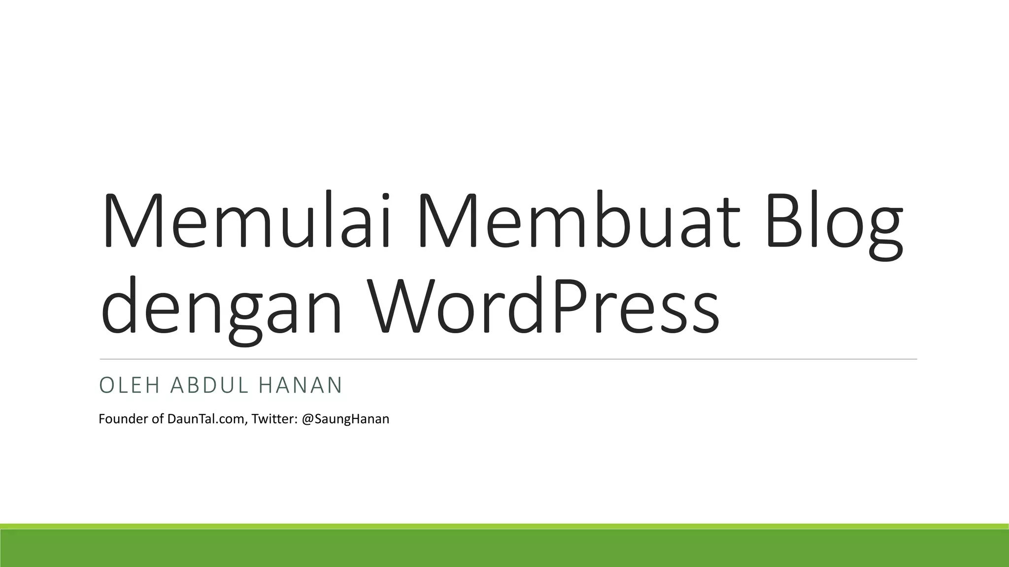 Dokumen ini membahas cara memulai blog dengan WordPress, termasuk penjelasan tentang jenis-jenis blog, fitur-fitur WordPress, dan langkah-langkah instalasi serta pengelolaan blog. Juga dijelaskan tentang pendaftaran di platform Dauntal.com untuk blog lokal di Indonesia. Informasi ini mencakup pembuatan konten, penyuntingan, serta penyesuaian tampilan blog.