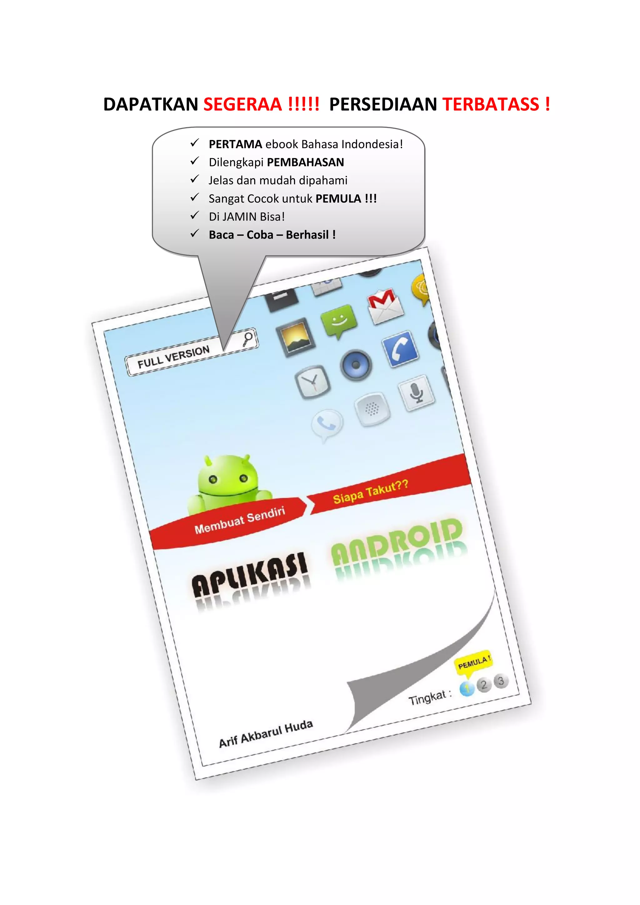 Ebook ini menawarkan tutorial lengkap untuk membangun aplikasi Android mulai dari dasar hingga tingkat lanjut menggunakan bahasa pemrograman Java dan alat pengembangan Eclipse. Ringkasan ini memberikan informasi mengenai konten, langkah-langkah, dan manfaat belajar dari ebook tersebut.
