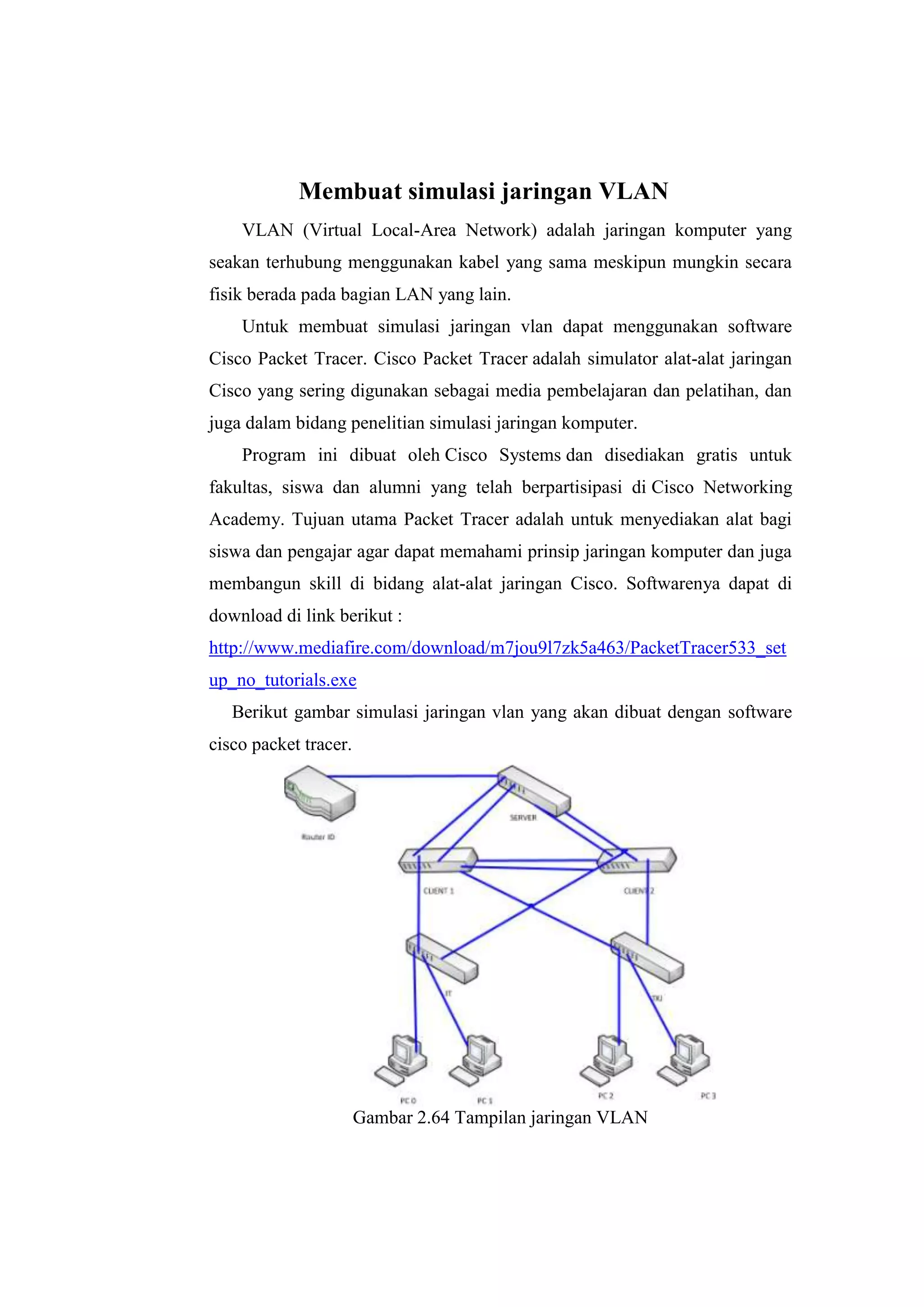 1) Simulasi jaringan VLAN dapat dibuat menggunakan software Cisco Packet Tracer untuk mempelajari konsep VLAN dan jaringan;